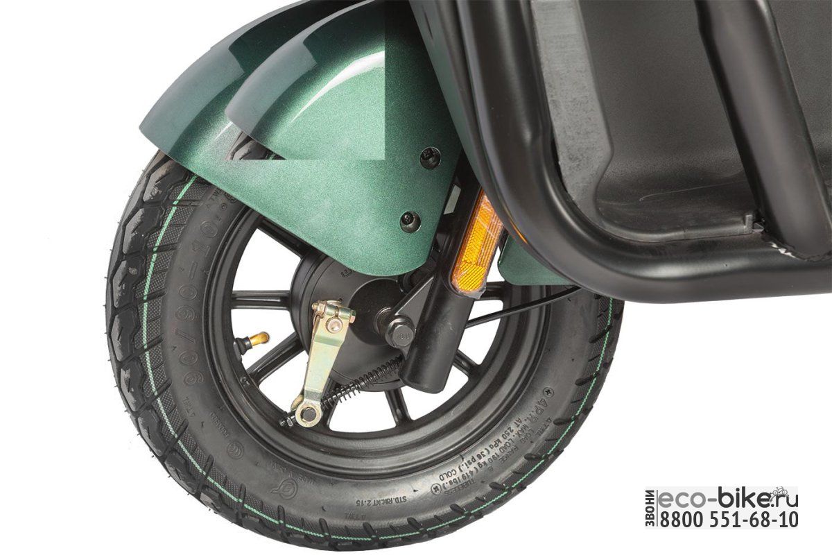 - Габариты: 2070х890х1680 мм — компактные размеры, которые позволяют легко маневрировать и парковать электрицикл даже в ограниченных пространствах.